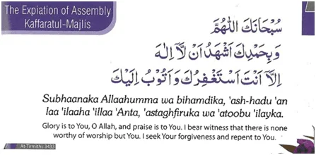 سُبْحَانَكَ اللَّهُمَّ وَبِحَمْدِكَ، أَشْهَدُ أَنْ لَا إِلَهَ إِلَّا أَنْتَ، أَسْتَغْفِرُكَ وَأَتُوبُ إِلَيْكَ