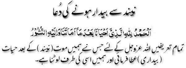 Subah neend se uthne ki dua with Urdu tarjuma, masnoon Islamic wazaif for getting up early in Hindi, Arabic prayer to wake up in Islam, supplication to wake early in English, Dua to read when waking up in the morning with English translation. Recite Arabic dua for getting up roman English text Hindi mein.